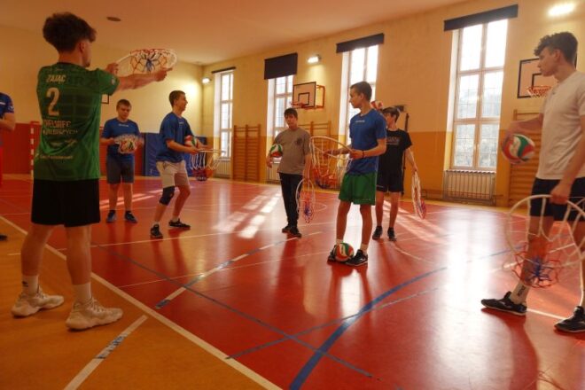 Trening siatkarski przy wsparciu zawodnika drużyny juniorów KPS Chełmiec