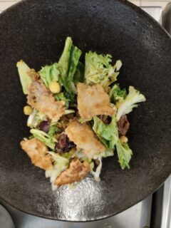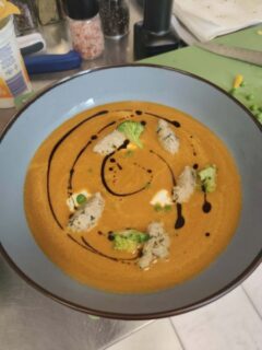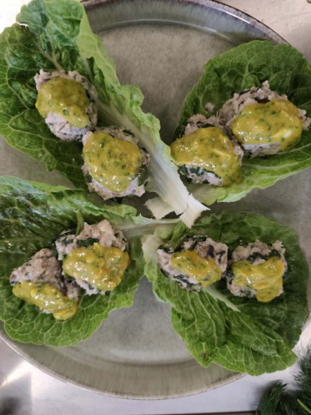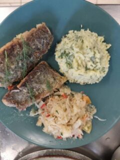 Po części teoretycznej nasi wychowankowie zdobytą wiedzę wykorzystali w przygotowaniu 3 dań z ryb. Z pełnym zaangażowaniem chłopcy przygotowali przystawkę z pulpecików i szpinaku, rybę smażoną z piure z ziemniaków i smażonej cebulki oraz sałatkę w sosie słodko-kwaśnym w chipsami z karpia.