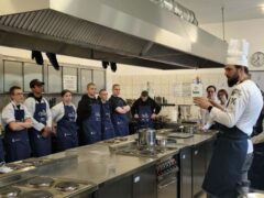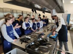 Pan Kamil Klekowski – mistrz w zawodzie kucharz zapoznał uczestników z technikami filetowania ryb oraz wykonał kilka dań z karpiem w roli głównej.