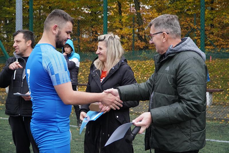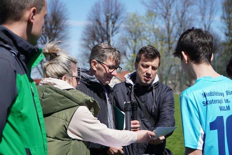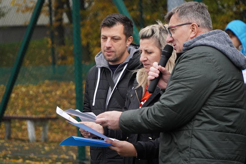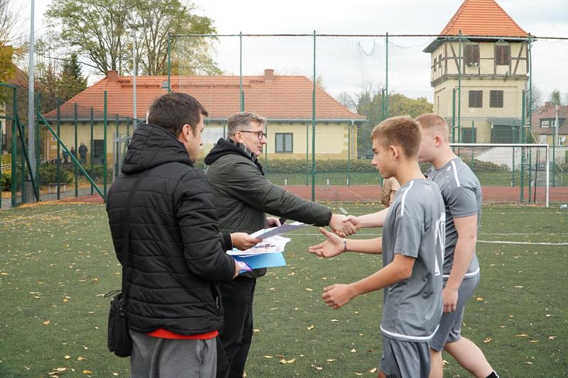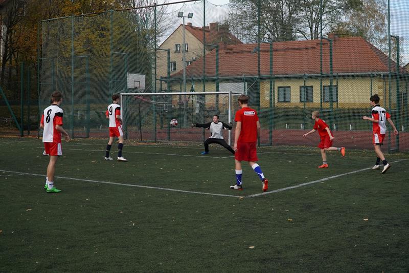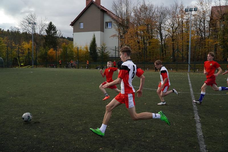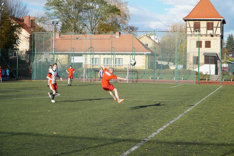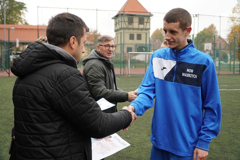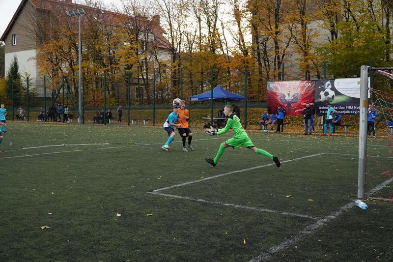 Piękna jesienna pogoda, która zagościła w uzdrowiskowym Szczawnie Zdrój wprawiła zgromadzonych w świetny nastrój, który pozwolił na przeprowadzenie naprawdę pięknych, sportowych zawodów. Po blisko trzech godzinach zaciętej wali na boisku największą liczbę punktów i tym samym fotel lidera tabeli objęła drużyna gospodarzy DMOW Wałbrzych prowadzona przez p. Radka Zająca, która tego dnia wygrała 5 spotkań gromadząc łącznie 15 punktów. Tuż za plecami gospodarzy uplasowała się świetnie spisująca się reprezentacja ZPEW Lwówek Śląski, która zanotowała 4 wygrane i jeden remis, co w sumie daje 13 punktów. Najniższe miejsce na podium po pierwszym turnieju przypadło świetnie grającej drużynie z ZPR Brzeg Dolny, która uzyskała 12 punktów notując 4 wygrane i jedną porażkę z wiceliderem aktualnej tabeli – ZPEW Lwówek Śląski. W przebiegu bardzo zaciętej rywalizacji pozostałe placówki nie odstępują czołówki na krok, co sprawia że kolejny Turniej Rundy Jesiennej zapowiada bardzo zaciętą i ciekawą rywalizację. W Turnieju przyznano pamiątkowe dyplomy i nagrody dla wyróżniających się zawodników oraz indywidualne wyróżnienia: