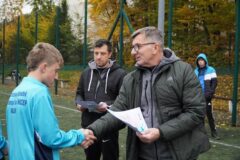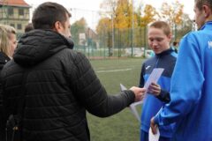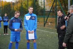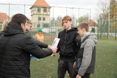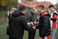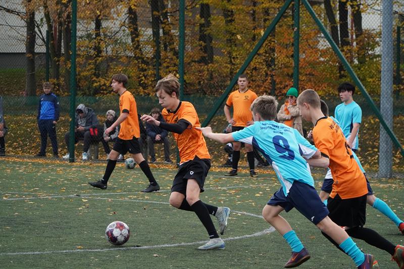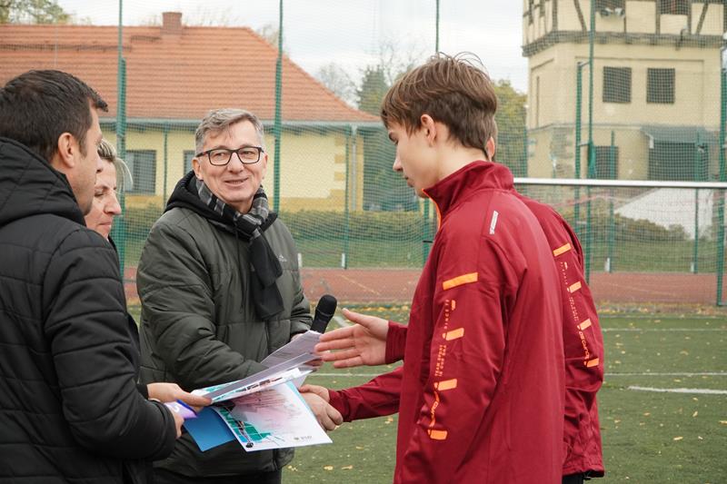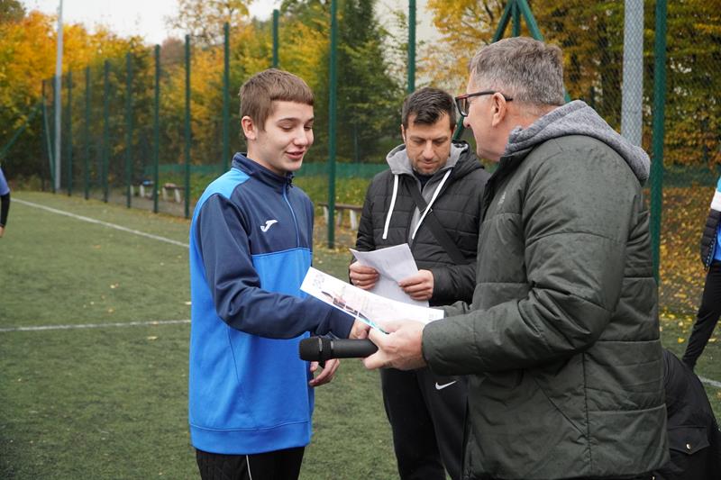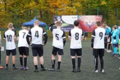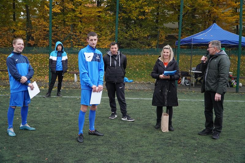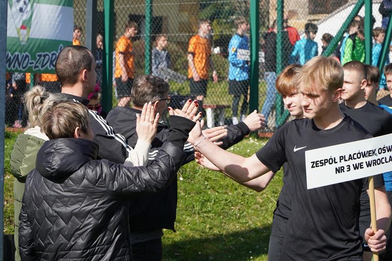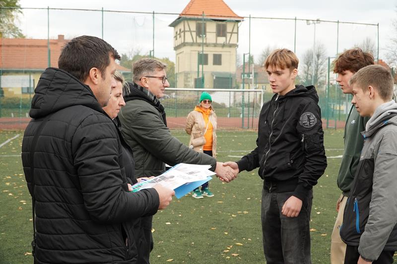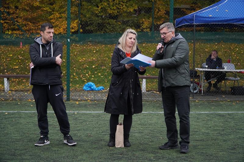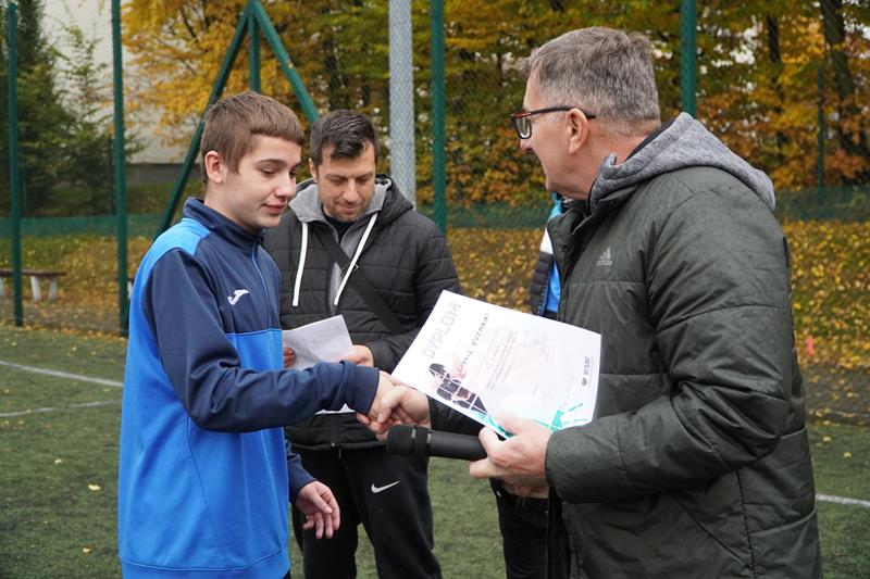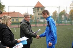Piękna jesienna pogoda, która zagościła w uzdrowiskowym Szczawnie Zdrój wprawiła zgromadzonych w świetny nastrój, który pozwolił na przeprowadzenie naprawdę pięknych, sportowych zawodów. Po blisko trzech godzinach zaciętej wali na boisku największą liczbę punktów i tym samym fotel lidera tabeli objęła drużyna gospodarzy DMOW Wałbrzych prowadzona przez p. Radka Zająca, która tego dnia wygrała 5 spotkań gromadząc łącznie 15 punktów. Tuż za plecami gospodarzy uplasowała się świetnie spisująca się reprezentacja ZPEW Lwówek Śląski, która zanotowała 4 wygrane i jeden remis, co w sumie daje 13 punktów. Najniższe miejsce na podium po pierwszym turnieju przypadło świetnie grającej drużynie z ZPR Brzeg Dolny, która uzyskała 12 punktów notując 4 wygrane i jedną porażkę z wiceliderem aktualnej tabeli – ZPEW Lwówek Śląski. W przebiegu bardzo zaciętej rywalizacji pozostałe placówki nie odstępują czołówki na krok, co sprawia że kolejny Turniej Rundy Jesiennej zapowiada bardzo zaciętą i ciekawą rywalizację. W Turnieju przyznano pamiątkowe dyplomy i nagrody dla wyróżniających się zawodników oraz indywidualne wyróżnienia: