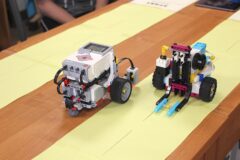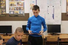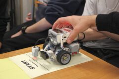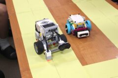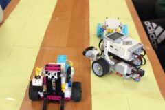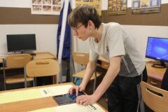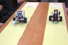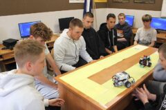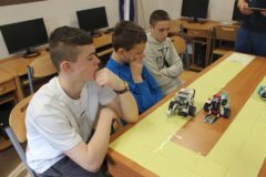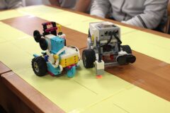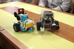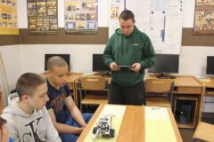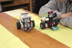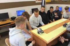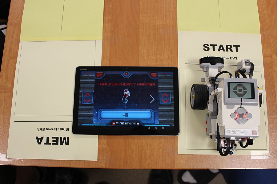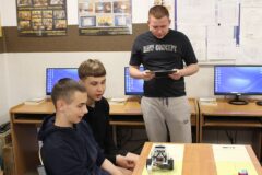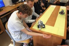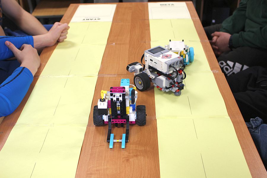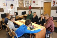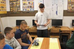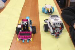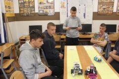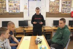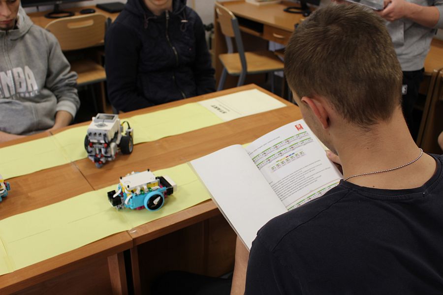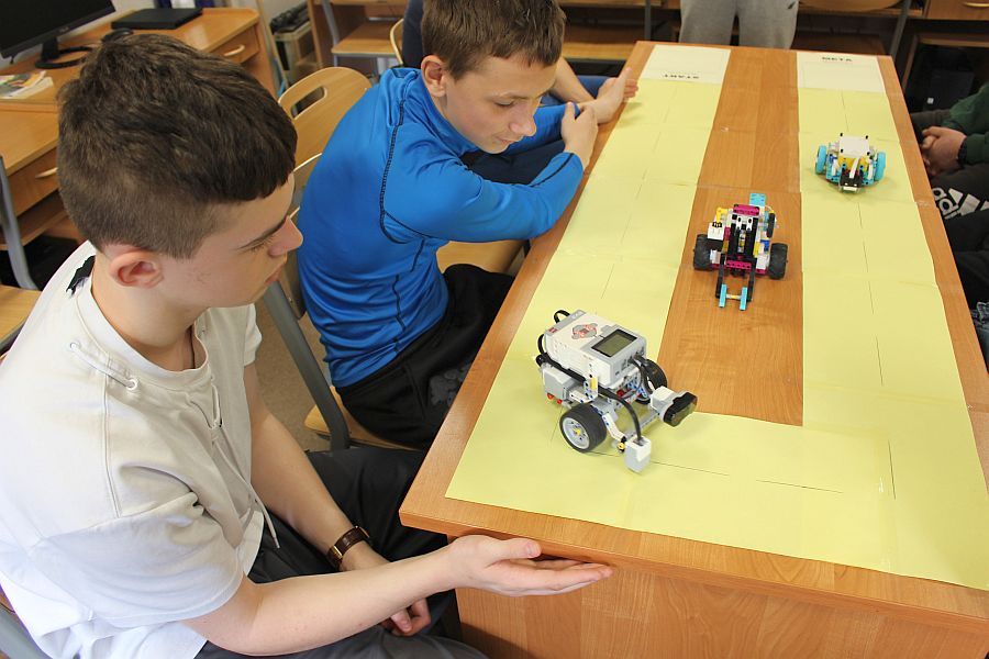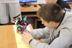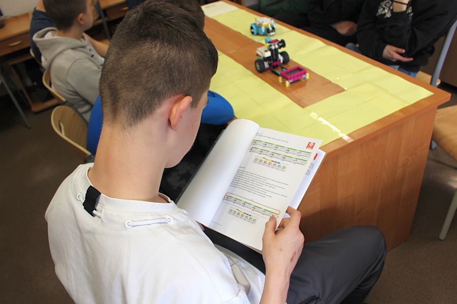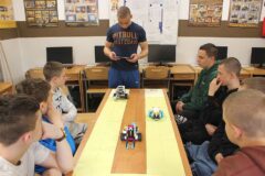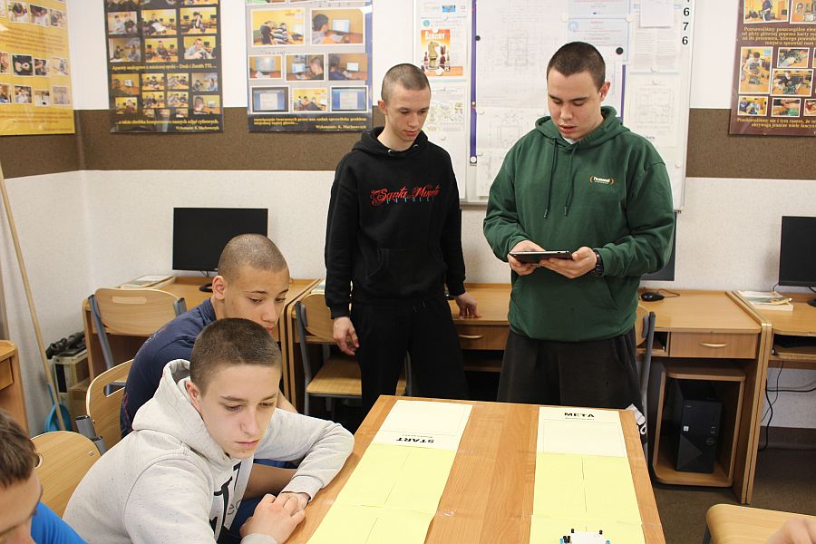Podczas zajęć warsztatowych wszyscy uczniowie naszego Ośrodka uczyli się precyzyjnego sterowania robotami Mindstorms EV3 oraz Spike Prime Education za pomocą dedykowanych aplikacji na urządzeniach mobilnych. Każdy z uczestników poszczególnych grup ćwiczeniowych miał za zadanie przeprowadzić robota przez tor i punkty kontrolne oraz ustawić go na linii mety. Uczniowie, którzy przybyli do naszej szkoły w ostatnim czasie, z ogromnym zaciekawieniem przyglądali się umiejętnościom chłopców, którzy już wcześniej uczyli się konstruować i sterować robotami, a nawet programować ich pracę podczas zajęć koła robotyki.