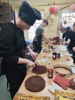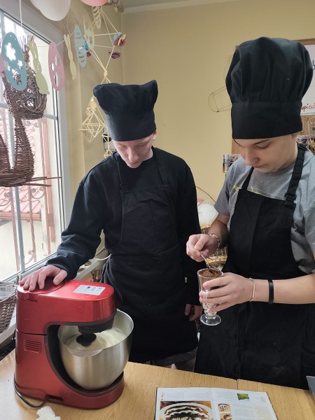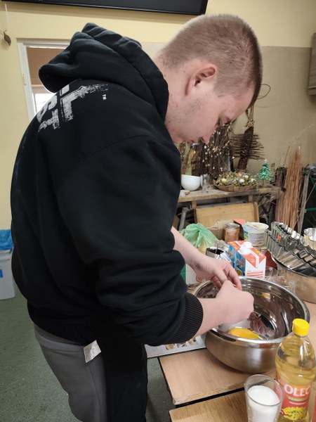 Przez kilka dni trwały zmagania cukiernicze naszych wychowanków w pracowni ” Nad Garażem ” z tradycyjnymi ciastami wielkanocnymi. Do konkursu zgłosiło się 9 drużyn jedno i dwuosobowych. Każda z nich samodzielnie wybrała rodzaj ciasta oraz spis produktów potrzebnych do jego przygotowania. Bogactwo składników oraz różnorodność wybranych ciast a przede wszystkim ich wyborny smak zaskoczyła komisję konkursową.Wychowankowie stworzyli tradycyjne ciasta wielkanocne takie jak serniki, babki oraz torty świąteczne.