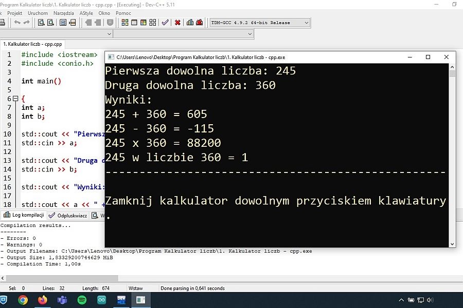 Już od kilku lat na zajęciach z informatyki uczniowie programują w języku C++. W tym roku wdrożyliśmy do pracy w tej dziedzinie nową wersję oprogramowania pod nazwą Embarcadero DEV C++, która pozwala naszym uczniom na programowanie własnych, prostych programów matematycznych.