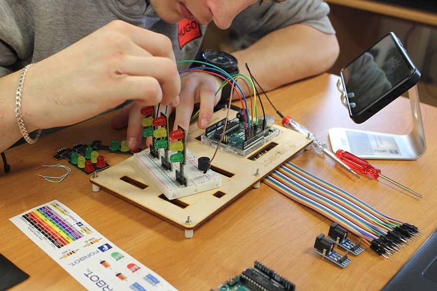 Obecnie podczas zajęć koła informatycznego oraz koła robotyki przyglądamy się także zestawom elektronicznym Arduino Forbot, które współpracując z małym mikrokontrolerem dają niezliczone możliwości projektowania rozmaitych aplikacji sprzętowo-programowych. Będą one wykorzystywane przyszłościowo na zajęciach koła robotyki. To kolejny krok do edukacji opartej na modelu STREAM, dzięki której nasi uczniowie uczą się samodzielnie, kreatywnie rozwiązywać zadania z dziedziny nowoczesnych systemów technologicznych.