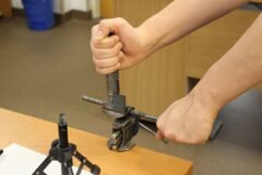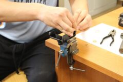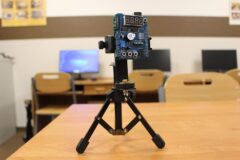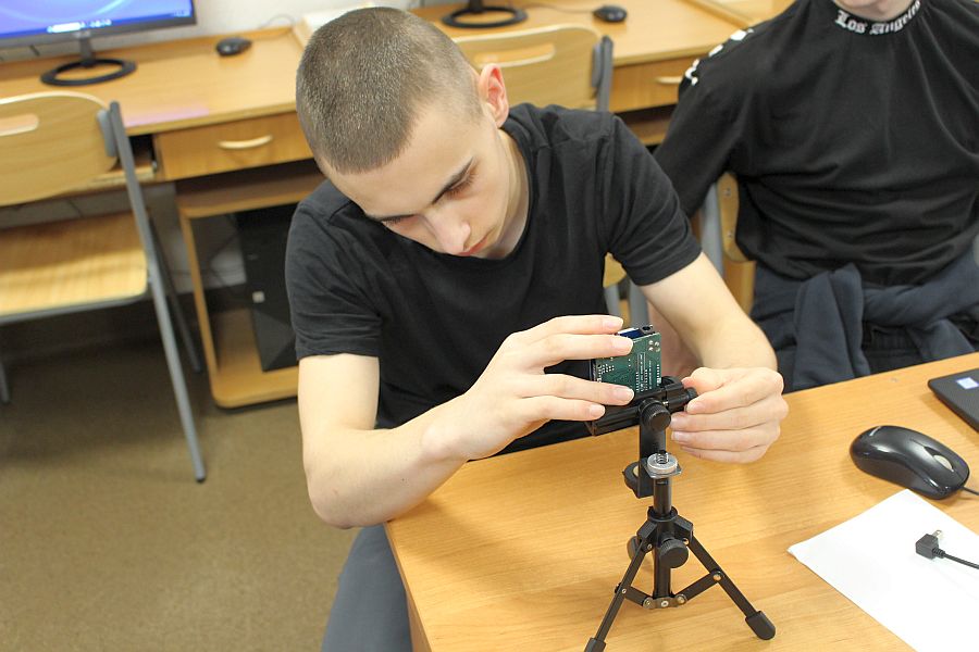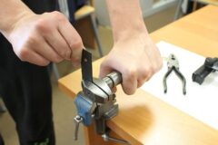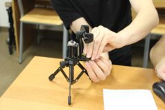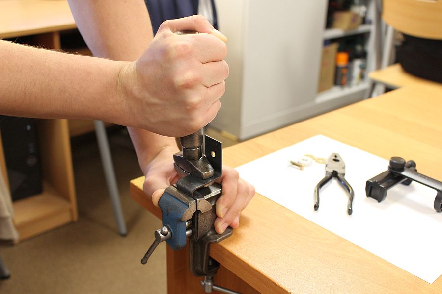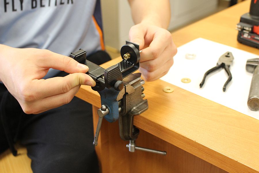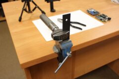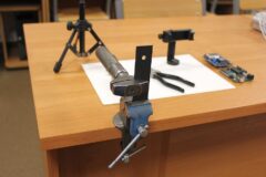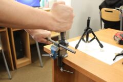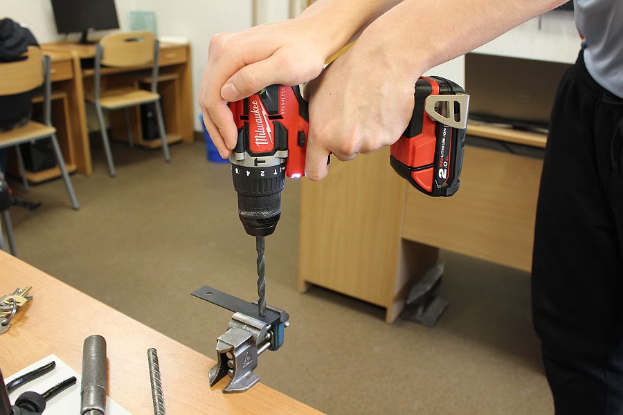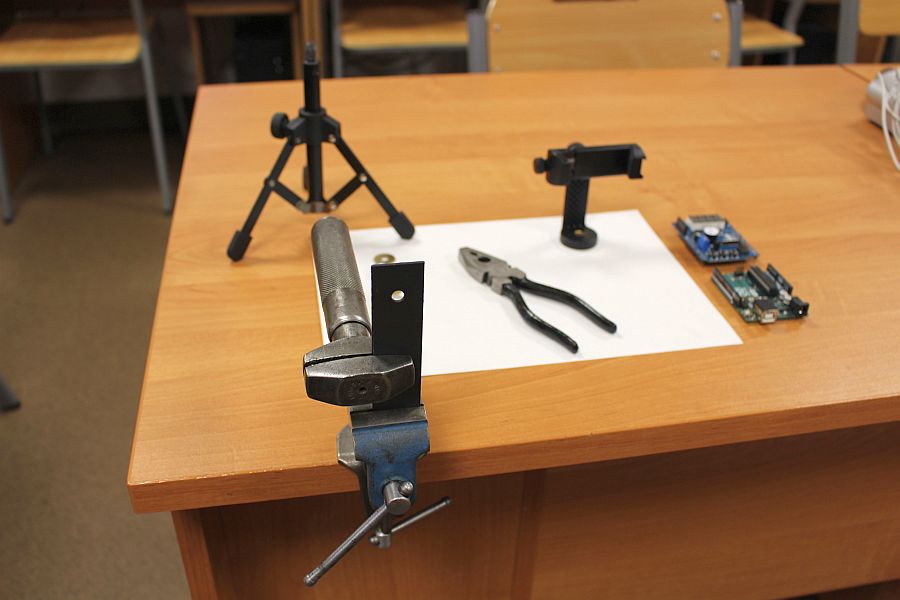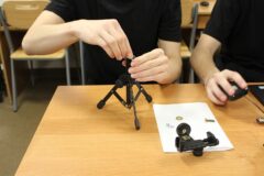 Zajęcia koła robotyki i mechatroniki w drugim semestrze rozpoczęliśmy od budowy statywu pod nowy podzespół  Multifunction Shield. Aby efekty pracy naszych uczniów były bardziej czytelne, postanowiliśmy opracować z różnych elementów stojak, na którym bezpiecznie zamocowany, podwójny układ płytek będzie wygodny do dalszej pracy. Zakupiliśmy mały trójnożny statyw i dobrej jakości uchwyt szczękowy. Natomiast profile łączeniowe blaszane i gwintowe wykonaliśmy własnoręcznie, w warunkach warsztatowych.