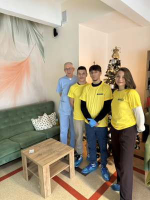 5 grudnia 2025 r. wychowankowie naszej placówki, wraz z panią psycholog, odwiedzili Wałbrzyskie Hospicjum w ramach działań wolontariackich. Podczas wizyty młodzież miała okazję wesprzeć personel i podopiecznych hospicjum w codziennych zadaniach. Wspólnie spędzony czas wypełniły rozmowy, drobna pomoc porządkowa Nasi wychowankowie z zaangażowaniem i empatią wsłuchiwali się w potrzeby pacjentów, okazując im życzliwość oraz obecność, która w takich miejscach ma ogromne znaczenie. Wizyta była dla wszystkich ważnym doświadczeniem – uczyła wrażliwości, odpowiedzialności i zrozumienia dla drugiego człowieka.