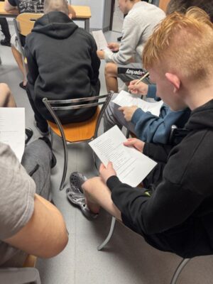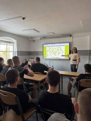 Na zakończenie spotkania uczestnicy wypełnili krótki test sprawdzający ich uważność podczas wykładu oraz znajomość współczesnej polszczyzny.