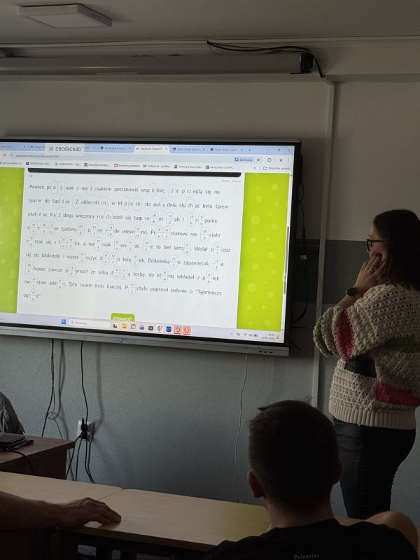 Po części teoretycznej wychowankowie przystąpili do wykonywania przygotowanych zadań językowych. Zmierzyli się z łamańcami językowymi, które dostarczyły zarówno dobrej zabawy, jak i treningu poprawnej wymowy. Następnie rozwiązywali zadania sprawdzające znajomość znaczenia trudnych polskich wyrazów, rozwijając swoje kompetencje językowe oraz zasób słownictwa.