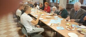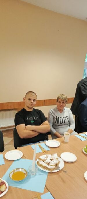 W dniu 24 września na zaproszenie przedstawicieli Towarzystwa Społeczno – kulturalnego Żydów w Wałbrzychu gościliśmy na święcie Rosz-Haszana, czyli w obchodach Nowego Roku Żydowskiego. Najpierw dowiedzieliśmy się co to za święto i jakie potrawy je się w tym okresie. Wszyscy zostali poczęstowani jabłkiem i chałką z miodem, oraz Gefilte fisch i czulent czyli rybą w galarecie i tzw. bigosem żydowskim, składającym się z wołowiny, kaszy i fasoli. Oprócz jabłek były tradycyjne granaty, winogrona, ciasto i napoje . Po konsumpcji odbył się koncert artystów: Roberta Delegiewicza i Pawła Słuczyńskiego, Panowie grali muzykę z filmów żydowskich. Honorowym gościem była nestorka i zarazem prezeska Towarzystwa Niemieckiego pani Dorota Stempowska. To było super doświadczenie dla naszych wychowanków, którzy poznali kulturę i tradycję Żydów. Z ochotą przyjęli także zaproszenie do pomocy w uprzątnięciu znanych Żydowskich grobów byłych mieszkańców Wałbrzycha.