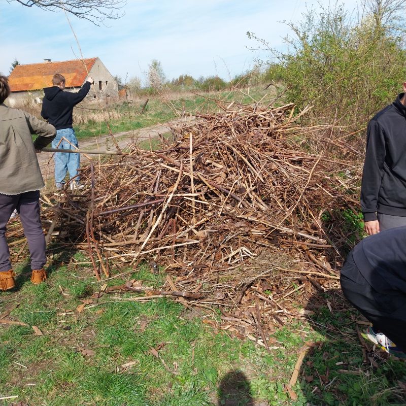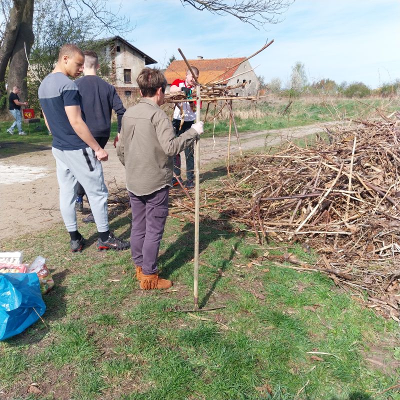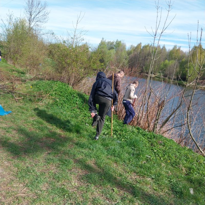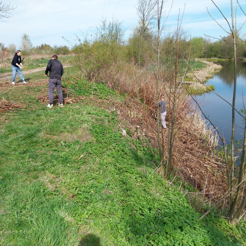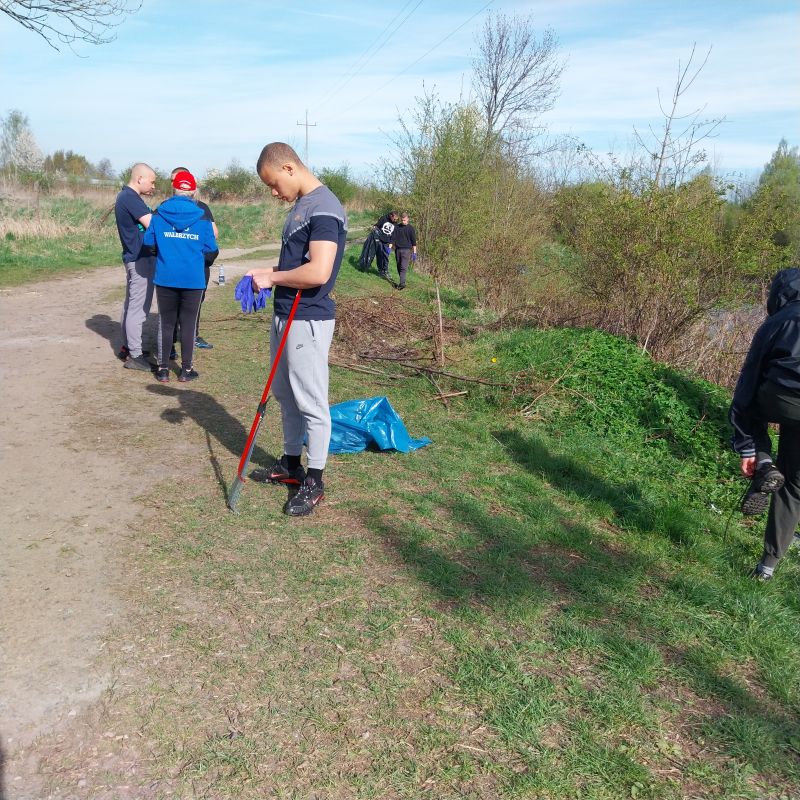 Dnia 25.04.2026 roku wychowankowie dwóch grup wychowawczych – łącznie 20 chłopców – pod opieką p. Krystyny, p. Edyty oraz p. Radka, wzięli udział w zajęciach o charakterze wolontariatu realizowanych we współpracy z Polskim Związkiem Wędkarskim Okręg Wałbrzych Miasto – Poniatów. Inicjatywa stanowiła kontynuację wcześniejszych działań podejmowanych na rzecz lokalnego środowiska. Wychowankowie aktywnie włączyli się w kompleksowe prace porządkowe na terenie Zbiornika Poniatów, przygotowując łowisko do rozpoczynającego się sezonu wędkarskiego. Zakres wykonywanych prac był szeroki – obejmował nie tylko zbieranie odpadów pozostawionych przez osoby korzystające z terenu rekreacyjnego, ale również karczowanie zarośli, usuwanie gałęzi oraz porządkowanie trudno dostępnych fragmentów terenu. Dzięki zaangażowaniu uczestników udało się znacząco poprawić estetykę i funkcjonalność tego miejsca. Chłopcy wykazali się dużą motywacją do działania, odpowiedzialnością oraz umiejętnością współpracy w grupie. Wspólna praca sprzyjała integracji, uczyła podziału obowiązków oraz konsekwencji w realizacji powierzonych zadań. Bezpośredni kontakt z przyrodą oraz świadomość realnego wpływu na otaczające środowisko dodatkowo wzmacniały pozytywne postawy ekologiczne.