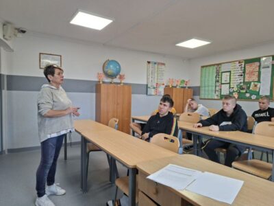 Kolejnym ważnym punktem był temat cyberprzemocy. Młodzież wzięła udział w ćwiczeniu opartym na materiale „Jak nie stać się przypadkowym sprawcą lub sprawczynią przemocy w sieci” . Rozmawialiśmy o anonimowości w Internecie, o tym, jak łatwo kogoś zranić przez ekran, oraz wspólnie stworzyliśmy kodeks bezpiecznego i odpowiedzialnego zachowania online. Dzięki krótkim dyskusjom i wyjaśnieniom młodzież mogła skonfrontować swoje przekonania z rzeczywistością i lepiej zrozumieć, że każda forma przemocy – fizyczna, słowna czy wykluczająca – jest krzywdząca.