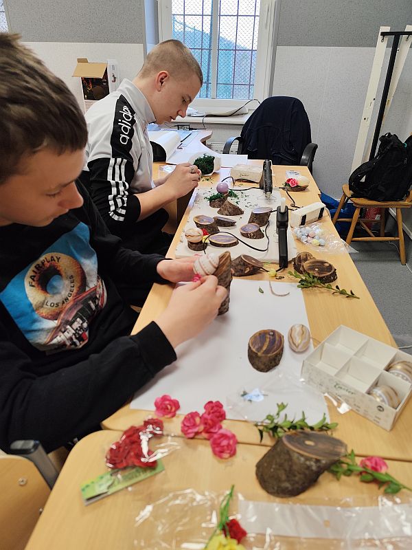 W piątek – 3 kwietnia, na zajęciach opiekuńczo‑wychowawczych w naszej szkole zrobiło się naprawdę świątecznie. Uczniowie tworzyli własne stroiki wielkanocne, wykorzystując m.in. gałązki, kolorowe pisanki, wstążki i wiosenne ozdoby. Praca przebiegała w twórczej, radosnej atmosferze, a każdy stroik okazał się wyjątkowy i niepowtarzalny. Dzięki wspólnej pracy mogliśmy poczuć nadchodzący klimat świąt oraz rozwijać kreatywność i zdolności manualne.