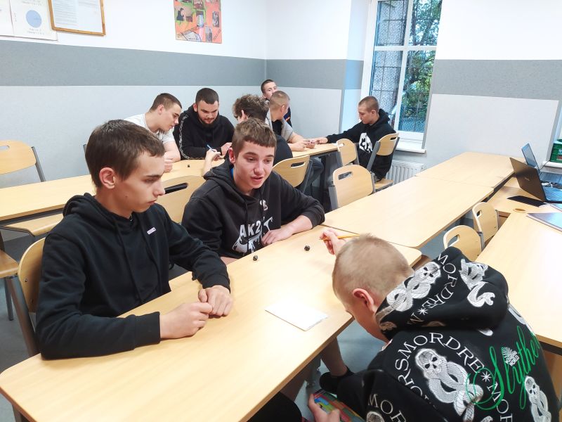 W dniu 1 października w naszej placówce obchodzony był Światowy Dzień Tabliczki Mnożenia. Nasi wychowankowie każdego dnia używają tabliczki mnożenia podczas codziennych zajęć, czy to matematyki, fizyki, chemii czy podczas zajęć z przedmiotów zawodowych i praktyk. Tak czy inaczej tego dnia chłopcy dowiedzieli się o pochodzeniu tego dnia, jego ważności którą, wydaje się że doceniają sami ponieważ widzą w jak wielu przedmiotach jest ona wykorzystana. Podczas naszego spotkania starałem się jeszcze bardziej naświetlić chłopcom jak bardzo ważną rolę odgrywa ona w naszym codziennym życiu o jej historii i pochodzeniu. Zaprezentowałem wychowankom, jako że nie wszyscy znają ją jeszcze odpowiednio dobrze, kilka technik nauki oraz używania jej podczas mnożenia liczb większych dwu i trzycyfrowych. Po tej części wychowankowie przystąpili do mini turnieju tabliczki mnożenia. Chłopcy dobrali się w trzyosobowe drużyny. Dwóch z nich rzucało dziesięciościennymi kostkami i nawzajem wyrzucali sobie działania z zakresu mnożenia a trzeci wychowanek sprawdzał wyniki. Następnie wychowankowie zmieniali się tak aby każdy mógł zagrać z każdym. I to właśnie ta część była dla chłopców niesamowicie atrakcyjna. Bawili się bardzo dobrze mimo tego że za tą grę nie przewidziane były jakiekolwiek nagrody.