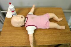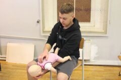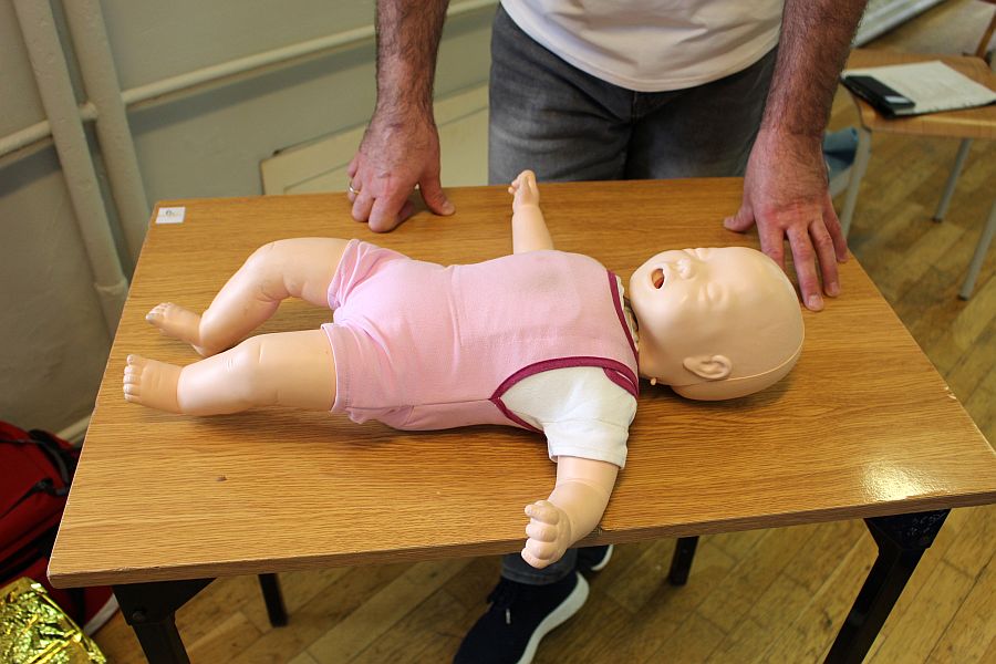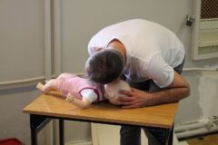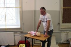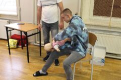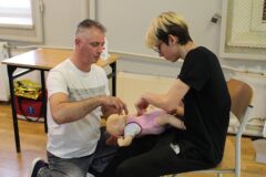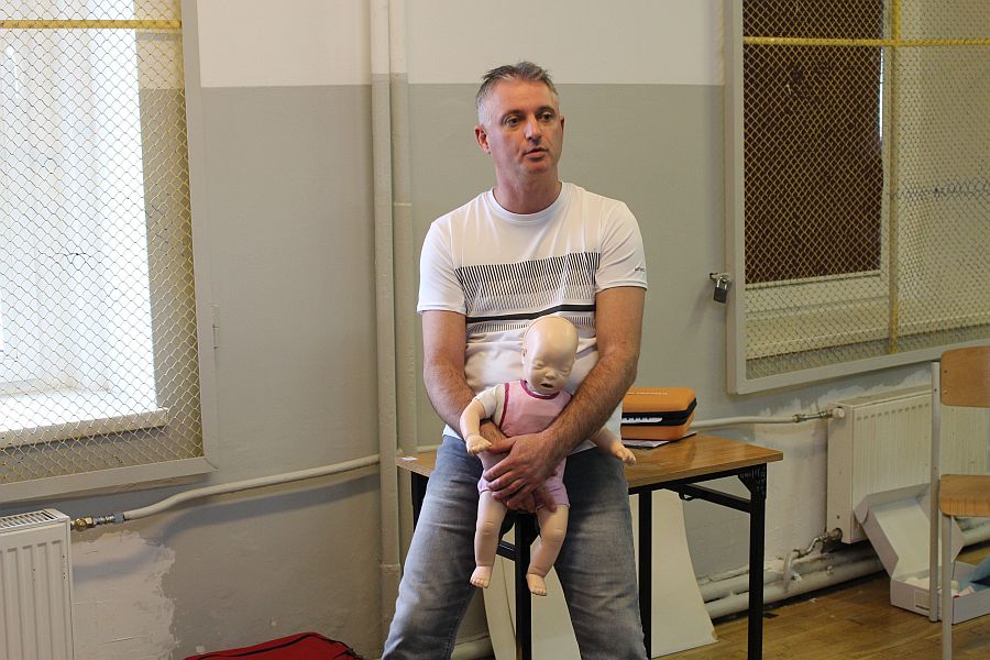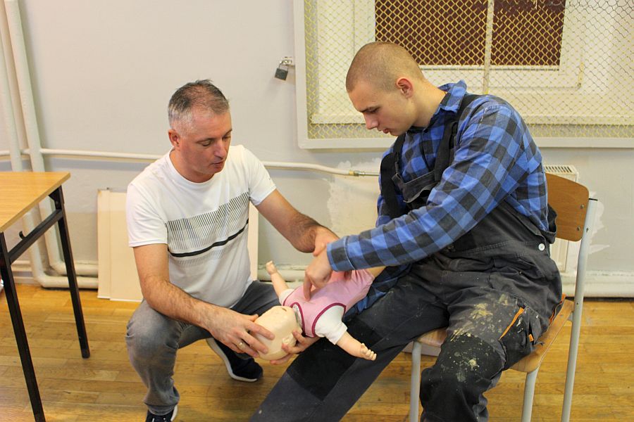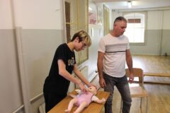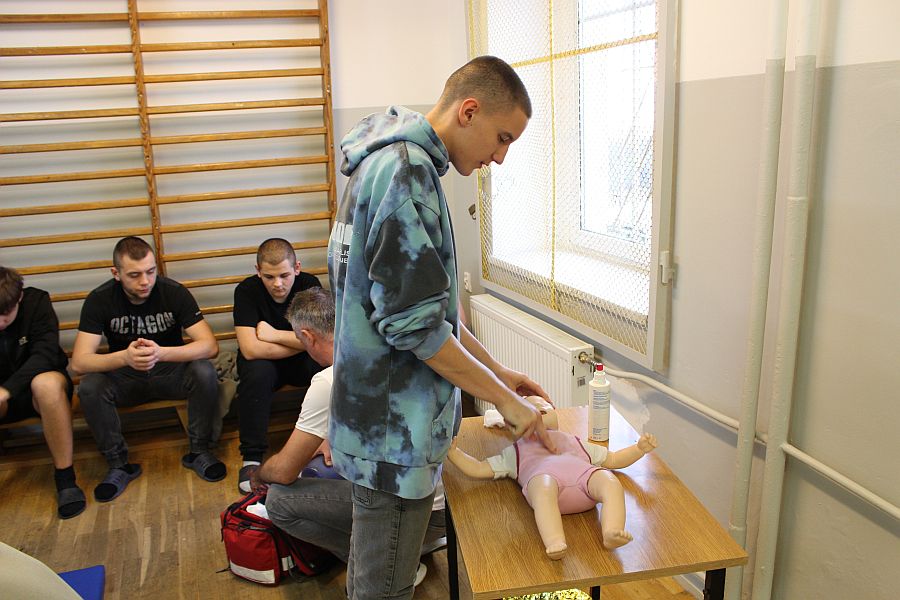 Po części wykładowej odbyły się zajęcia praktyczne podczas których wychowankowie ćwiczyli na fantomie sprawdzanie przytomności i oddechu, prawidłowe wykonywanie uciśnięć klatki piersiowej, różnice pomiędzy RKO u dorosłego i dziecka oraz prawidłowe postępowanie w przypadku zadławienia.
