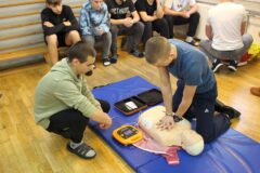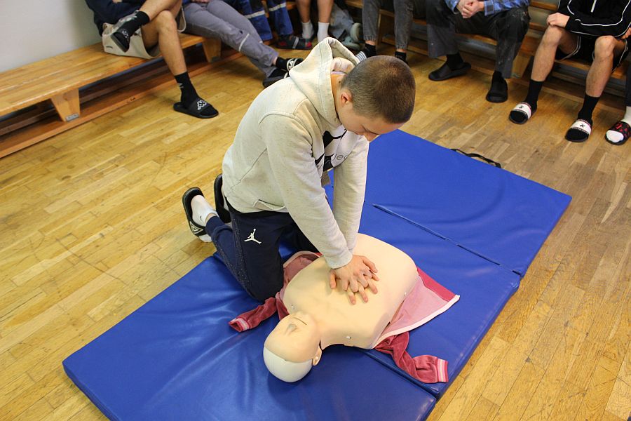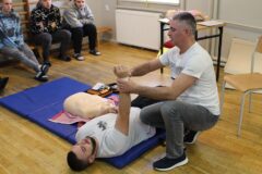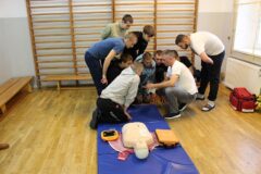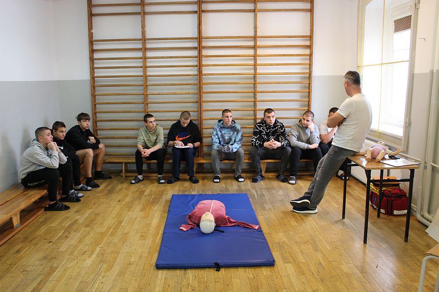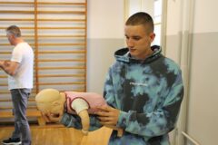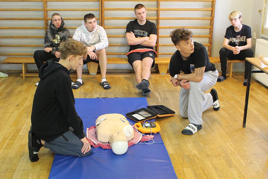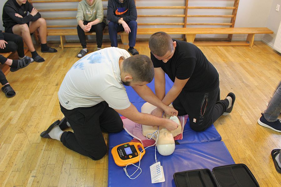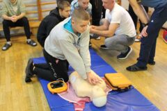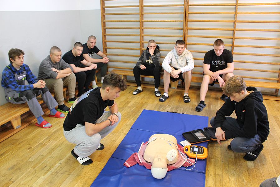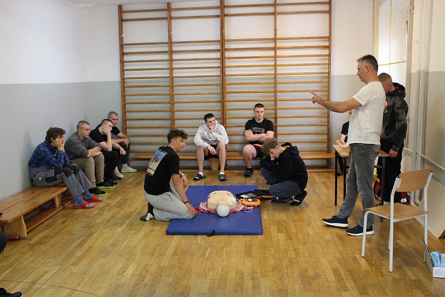 W dniu 20 listopada 2025 roku już od godziny 7.30 odbywały się szkolenia z pierwszej pomocy przedmedycznej  dla wszystkich uczniów naszej szkoły. Młodzież w 3 grupach pilnie i aktywnie uczyła się jak prawidłowo postępować w różnych przypadkach ratujących zdrowie i życie innych. Celem szkolenia było podniesienie świadomości i umiejętności uczestników udzielania pierwszej pomocy przedmedycznej, ze szczególnym uwzględnianiem reagowania w przypadkach nagłego zagrożenia życia lub zdrowia zarówno u dorosłych, jak i u dzieci. Istotnym elementem było również zapoznanie uczestników z zasadami bezpiecznego użycia urządzenia AED. Prowadzący , ratownik medyczny Paweł Michalik, omówił najczęstsze sytuacje , w których zachodzi potrzeba udzielenia pierwszej pomocy, takie jak: utrata przytomności i omdlenia, zatrzymanie krążenia, zadławienia, ataki chorób przewlekłych (np.: padaczka, cukrzyca), opatrywanie ran.