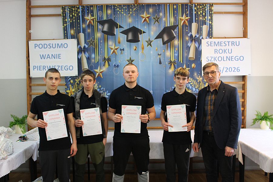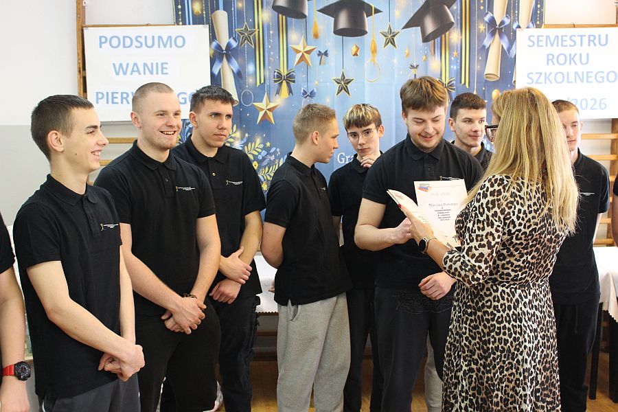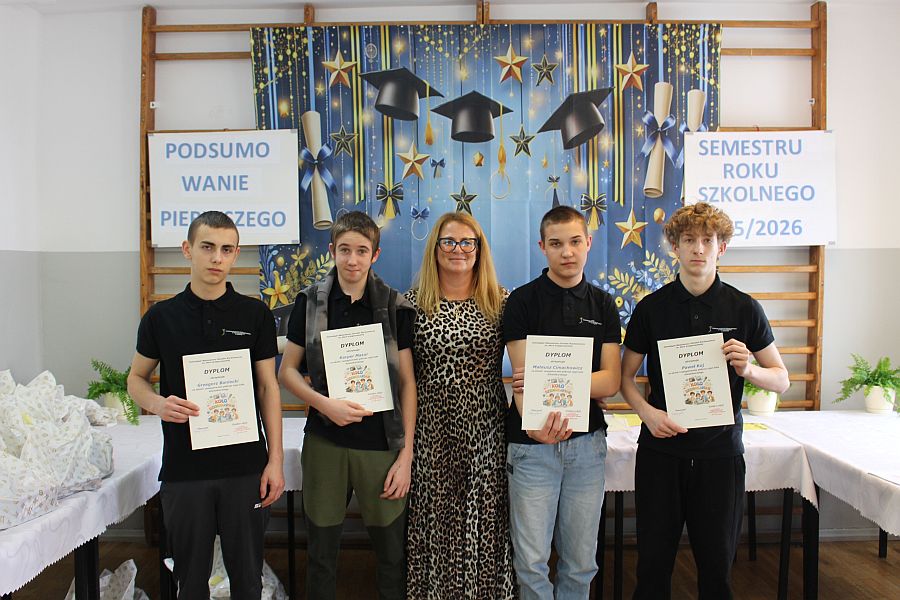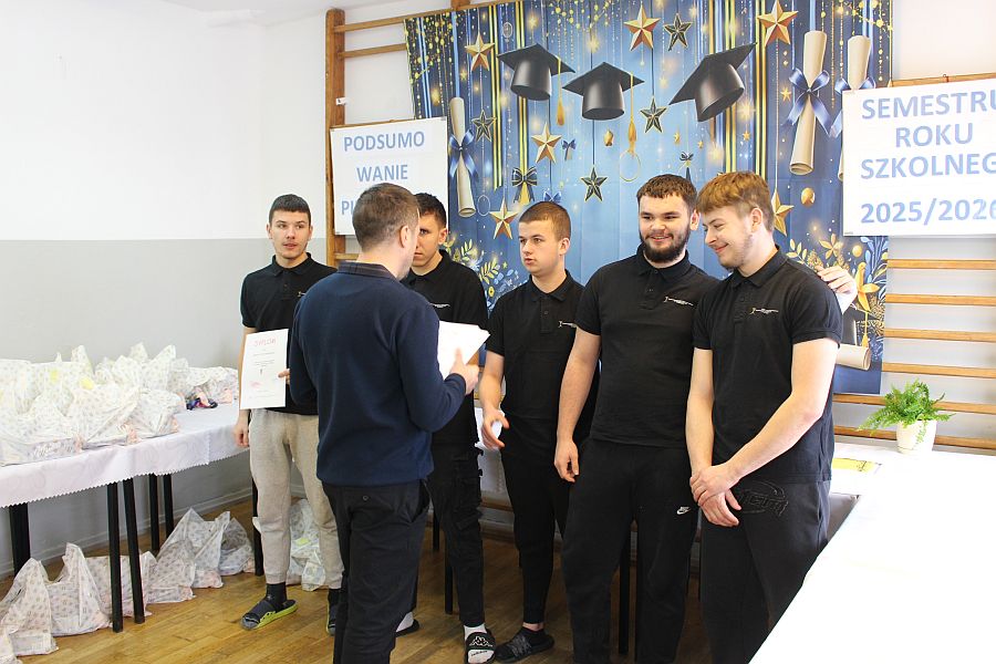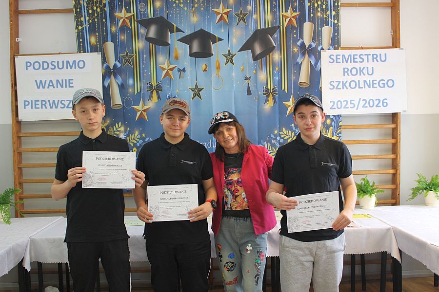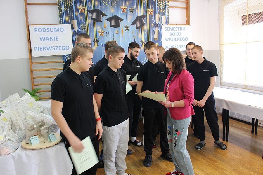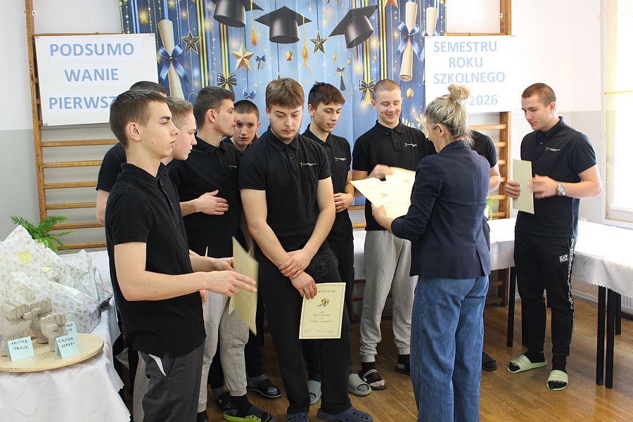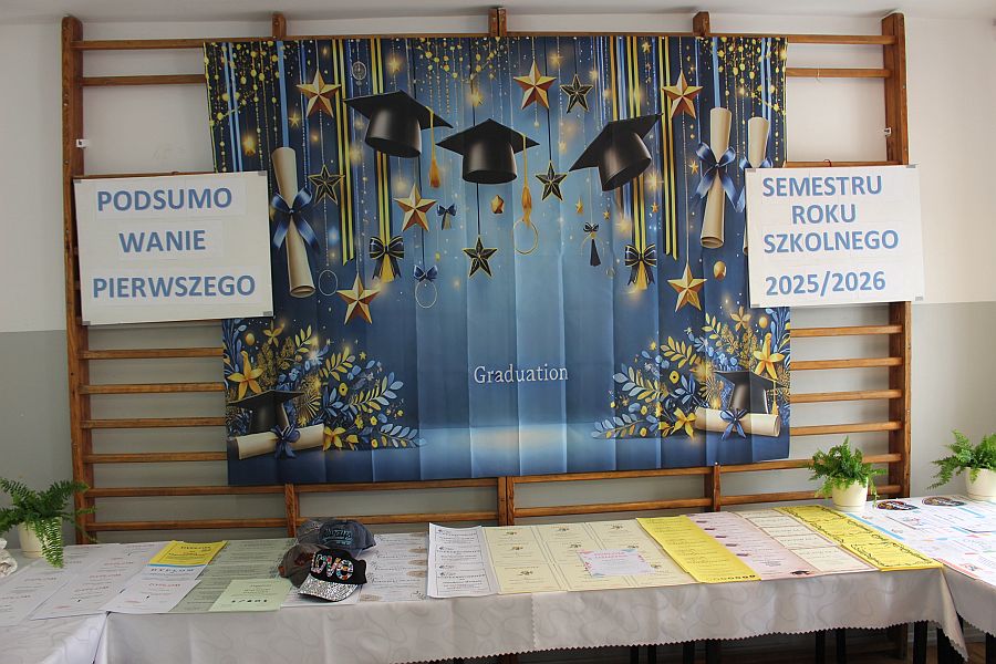W dniu 19 lutego 2026 r. w sali gimnastycznej naszej szkoły odbyło się uroczyste podsumowanie I semestru bieżącego roku szkolnego. W wydarzeniu wzięli udział uczniowie, nauczyciele oraz pracownicy szkoły. Była to doskonała okazja do wspólnego podsumowania kilku miesięcy wytężonej pracy, a także do wyrażenia uznania dla tych, którzy szczególnie wyróżnili się swoim zaangażowaniem i osiągnięciami.