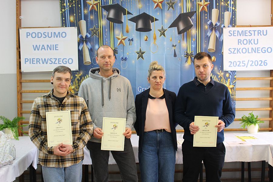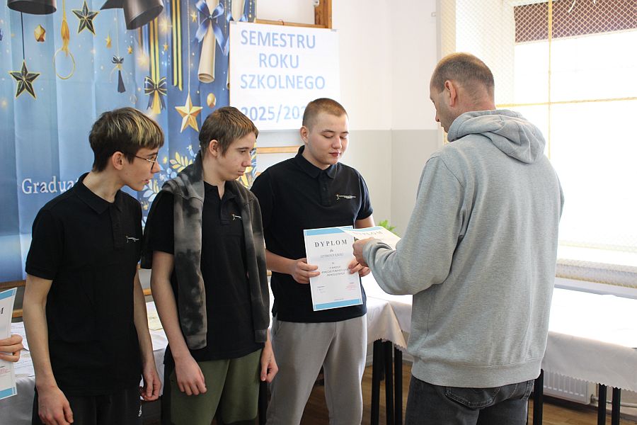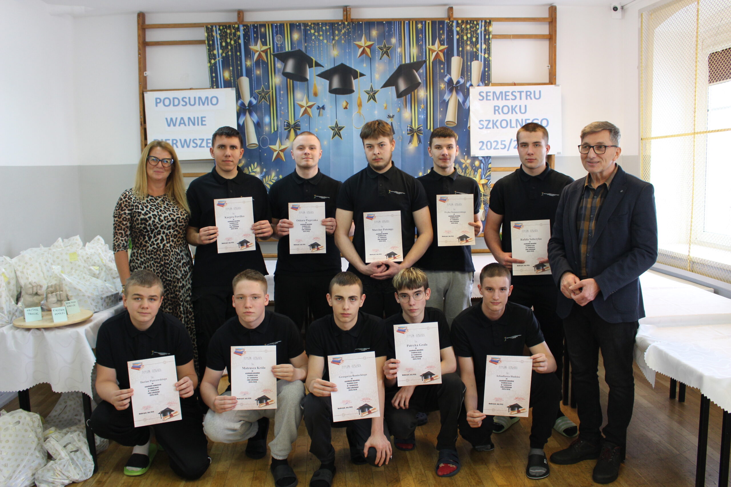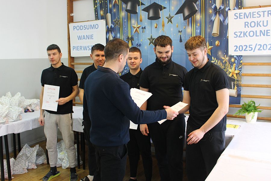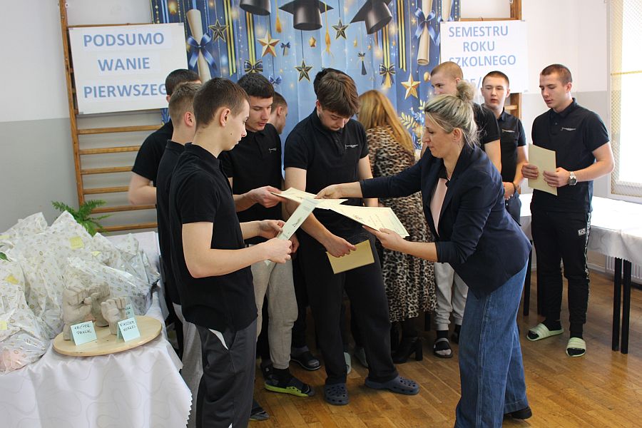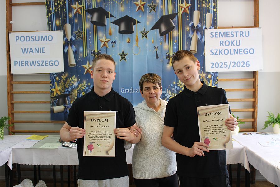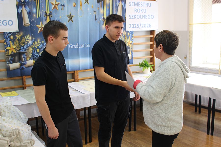 W dniu 19 lutego 2026 r. w sali gimnastycznej naszej szkoły odbyło się uroczyste podsumowanie I semestru bieżącego roku szkolnego. W wydarzeniu wzięli udział uczniowie, nauczyciele oraz pracownicy szkoły. Była to doskonała okazja do wspólnego podsumowania kilku miesięcy wytężonej pracy, a także do wyrażenia uznania dla tych, którzy szczególnie wyróżnili się swoim zaangażowaniem i osiągnięciami.