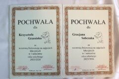 Podczas apelu nagrodzono uczniów za uzyskanie wysokich wyników w nauce, systematyczność oraz sumienne wywiązywanie się z obowiązków wychowanka i ucznia. Doceniono również tych, którzy aktywnie uczestniczyli w życiu szkoły, reprezentowali ją w konkursach, zawodach sportowych oraz włączali się w działania na rzecz społeczności szkolnej, takich jak np. wolontariat. Prawie wszyscy wychowankowie otrzymali dyplomy, wyróżnienia, pochwały, a także drobne upominki i nagrody rzeczowe, które były wyrazem uznania za ich trud i zaangażowanie.