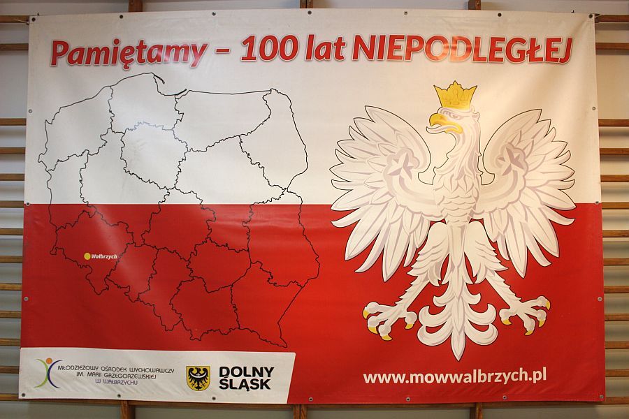 W dniu 10 listopada 2025 roku w sali gimnastycznej DMOW w Wałbrzychu wychowawcy, uczniowie oraz nauczyciele zgromadzili się, aby wspólnie uczcić 107. rocznicę odzyskania przez Polskę niepodległości. Uroczystość rozpoczęto od wspólnego odśpiewania hymnu państwowego. Następnie przypomniano najważniejsze momenty walki Polaków o wolność i niepodległość Ojczyzny, oddając hołd bohaterom, którzy przyczynili się do odzyskania niepodległości.