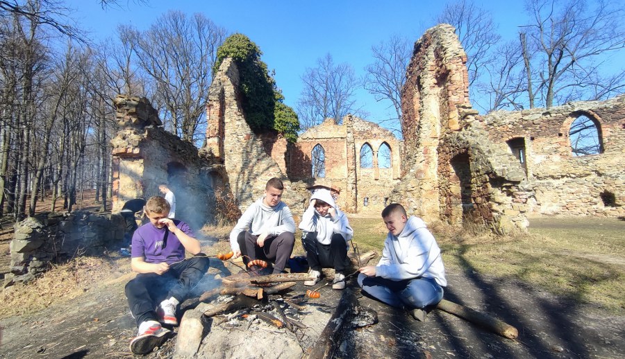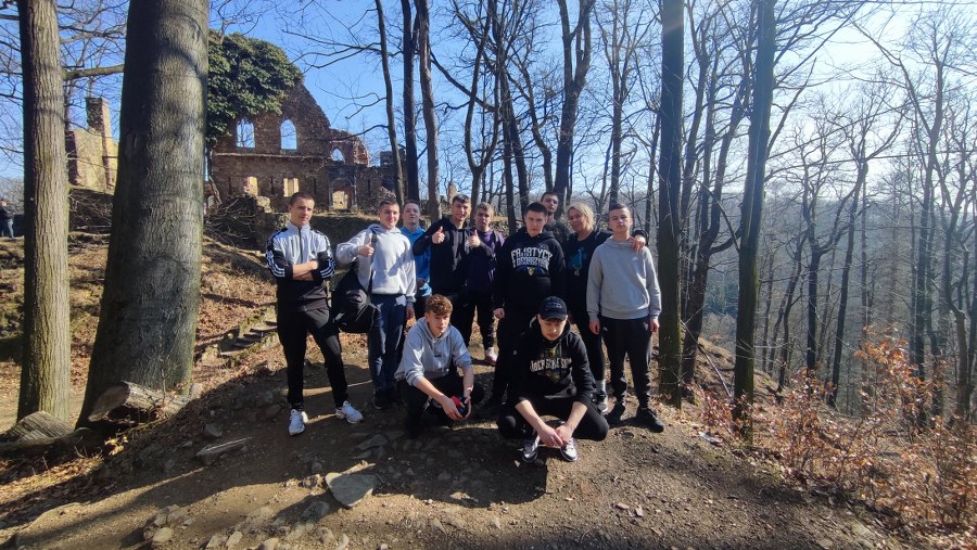 W minioną sobotę 07.03.2026 korzystając z pięknej pogody wychowankowie grupy pierwszej wraz z panią Beatą wzięli udział w pieszej wycieczce do ruin Starego Zamku Książ. Celem wyjścia była integracja grupy, aktywne spędzenie czasu na świeżym powietrzu oraz poznanie lokalnych atrakcji turystycznych i historii regionu. Podczas wędrówki uczestnicy mieli okazję podziwiać malownicze tereny Książańskiego Parku Krajobrazowego, oraz piękne widoki na dolinę rzeki Pełcznicy. Po dotarciu do ruin zamku wychowankowie zapoznali się z historią tego miejsca, a po krótkim odpoczynku przyszedł czas na wspólne ognisko. Wychowankowie z zaangażowaniem przygotowali miejsce na ogień, a następnie piekli kiełbaski i spędzali czas na rozmowach, oraz wspólnej integracji. Była to doskonała okazja do budowania pozytywnych relacji w grupie, rozwijania umiejętności współpracy oraz kształtowania odpowiedzialności za wspólne działania. Wycieczka przebiegła w miłej i bezpiecznej atmosferze. Uczestnicy wrócili do ośrodka zmęczeni, ale zadowoleni z aktywnie spędzonego dnia oraz z nowymi wspomnieniami ze wspólnej wyprawy. Takie inicjatywy są ważnym elementem pracy wychowawczej, ponieważ sprzyjają integracji, uczą szacunku do przyrody oraz zachęcają do zdrowego i aktywnego stylu życia.