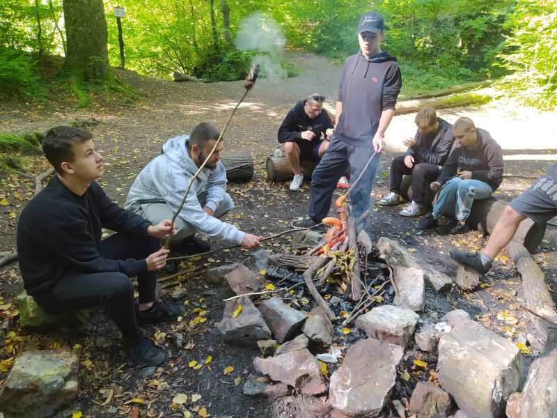 W dniu 28 września 2025 roku wraz z 8 wychowankami z naszego Ośrodka odbyliśmy wycieczkę do Książańskiego Parku Krajobrazowego. Wychowankowie bardzo entuzjastycznie podeszli do tej idei. Ten dzień rozpoczęliśmy od przygotowania się do wycieczki nad Jeziorko Daisy, urokliwe miejsce położone w Książańskim Parku Krajobrazowym. Miejsce to owiane jest wieloma tajemnicami i opowieściami. Tak jak większość ciekawych miejsc w naszych okolicach łączy się z historią rodziny Hochbergów, rodziny bajecznie bogatych ludzi którzy na wieki zmienili obraz naszego regionu. Po wyjściu z Placówki udaliśmy się w jego rejon. Pogoda tego dnia była niesamowita, słońce i delikatny wiatr który sprawiał że wędrówka była bardzo przyjemna. Jako że poprzedniego dnia nasi wychowankowie byli na prelekcji dotyczącej Zamku Książ i związanej z nim rodziny Hochbergów cała droga upłynęła nam o opowieściach o historii tej rodziny. Po dotarciu na miejsce opowiedziałem chłopcom o historii tego miejsca, o wydobyciu tam w dawnych czasach wapnia i wreszcie o tym skąd ten wapń się tam znalazł. Na ich twarzach widać było zainteresowanie. Potem ognisko i pieczone kiełbaski. A potem, oporządzenie miejsca po ognisku i wyruszyliśmy w drogę powrotną a podczas niej dalej opowieści i opowieści. Przebieg wycieczki oceniam bardzo pozytywnie.