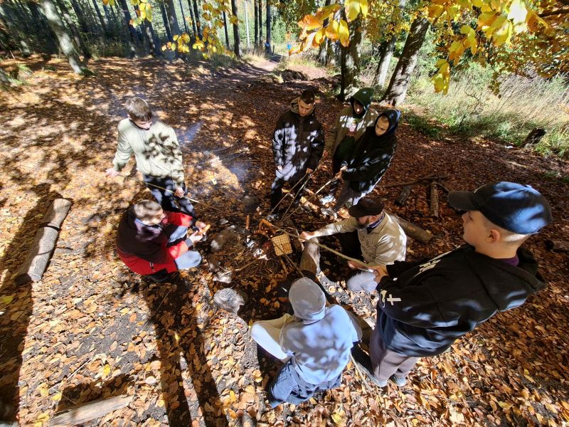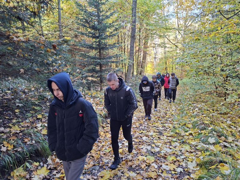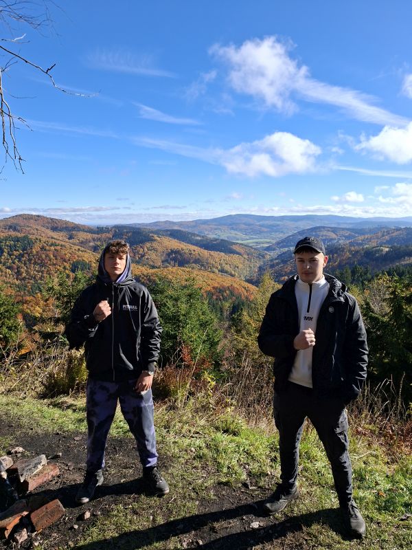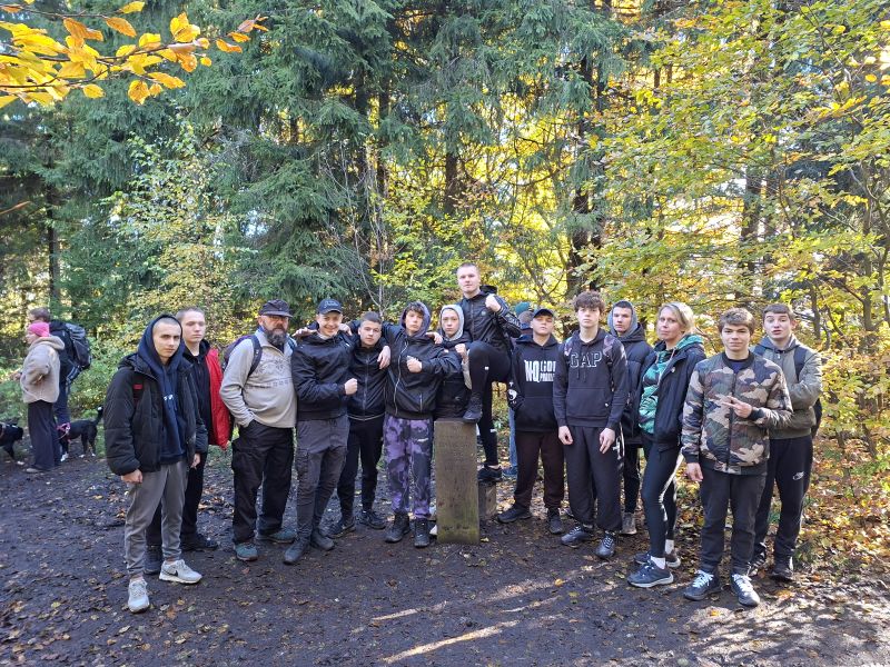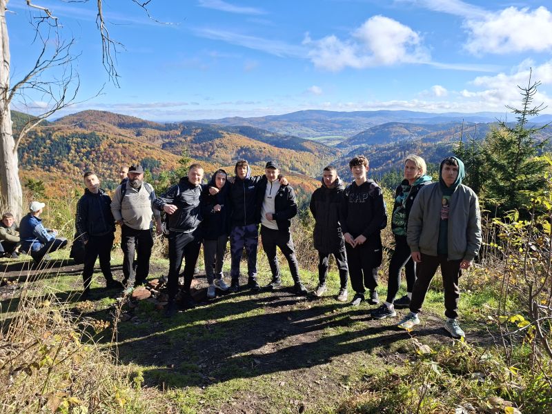W dniu 19 października 2025 roku wraz z wychowankami z I i III grupy wychowawczej naszego Ośrodka odbyliśmy wycieczkę w rejon Gór Suchych, Kruczych i Kamiennych. Wędrówkę rozpoczęliśmy przejazdem do Rybnicy Leśnej w rejon Schroniska Andrzejówka. Tam, zaraz po wyjściu z autobusu naszą wędrówkę. Wraz z nami wędrowało wielu turystów- pogoda była cudowna, pomimo tego że rano jak przyjechaliśmy w to miejsce to na trawie był jeszcze szron. Wszyscy wychowankowie zachwyceni byli panującymi warunkami atmosferycznymi- było bardzo ciepło i świeciło przepiękne słońce. Podczas wędrówki wszyscy wychowankowie włożyli wiele wysiłku w pokonanie własnych słabości i pewnego rodzaju niechęci do wędrówki. Odwiedziliśmy wiele punktów widokowych. Jakież tam były widoki. Pamiątkowe zdjęcia, niesamowite opowieści o Hochbergach, ich potędze i turystyce, która w ich czasach i za ich przyzwoleniem w tym rejonie zaczęła się intensywnie rozwijać. Jeszcze ognisko i posiłek na Rozdrożu pod Szpiczakiem. I niestety, pomimo przepięknych warunków atmosferycznych, powoli trzeba było wyruszyć w drogę powrotną, a szkoda. Po drodze rozmawialiśmy na temat dzisiejszej wycieczki i planów na kolejne wyjścia.