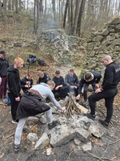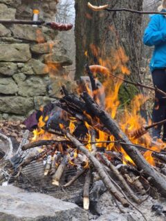 W związku z powyższym w sobotnie popołudnie gr. II i III postanowiła odwiedzić to niezwykle malownicze miejsce. Na naszą wyprawę ruszyliśmy zaraz po śniadaniu, w kierunku Książańskiego Parku Narodowego. Po dość długiej, ale jakże przyjemnej wędrówce dotarliśmy na miejsce, w którym roztaczała się aura tajemniczości, oraz niezwykłej historii. Chłopcy byli pod dużym wrażeniem nie tylko samego miejsca, lecz również panującym tam tajemniczym klimatem. Oczywiści podczas wycieczki obowiązkowym punktem jest ognisko z pieczonymi kiełbaskami. Najedzeni, pełni energii ruszyliśmy w drogę powrotną podczas której głównym tematem była Księżna Daisy oraz jej życie…