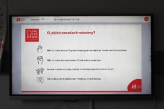 Kampania Dzieciństwo bez Przemocy jest coroczną, ogólnopolską akcją, mobilizującą całe społeczeństwo do zapobiegania krzywdzeniu dzieci oraz podejmowania działań na rzecz budowania bezpiecznego dzieciństwa, dlatego nasza placówka zgłosiła w niej swój udział. Oprócz zajęć, które odbywały się podczas lekcji i zajęć bibliotecznych, postanowiliśmy wziąć udział w zajęciach prowadzonych w formie interaktywnej  pt. „ Poczuj się bezpiecznie – po co nam zasady w klasie”–  gdzie młodzież obejrzała krótkie materiały filmowe, wzięła udział w głosowaniach online. Punktualnie o 8.55 połączyliśmy się na żywo z panią Katarzyną Poniatowską – socjoterapeutką,  pedagożką resocjalizacyjną, specjalistką ds. ochrony dzieci Fundacji Dajemy Dzieciom Siłę, która prowadziła zajęcia dla ponad 2000 klas. W naszej szkole uczestniczyły klasy I oraz klasa 8, a Podczas lekcji uczestnicy zastanowią się, jakie znaczenie mają bezpieczne relacje i dlaczego umiejętność mówienia „stop” albo „nie” bywa trudna, a jednocześnie bardzo potrzebna. Na samym końcu uczniowie próbowali wybrać listę zasad, które mogą pomóc budować w klasie atmosferę szacunku i zaufania. Wszystkim bardzo podobała się ta inna forma zajęć, każdy z zainteresowaniem słuchał i uczestniczył aktywnie w zajęciach.