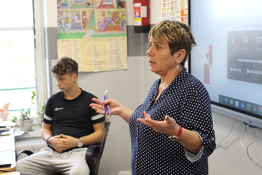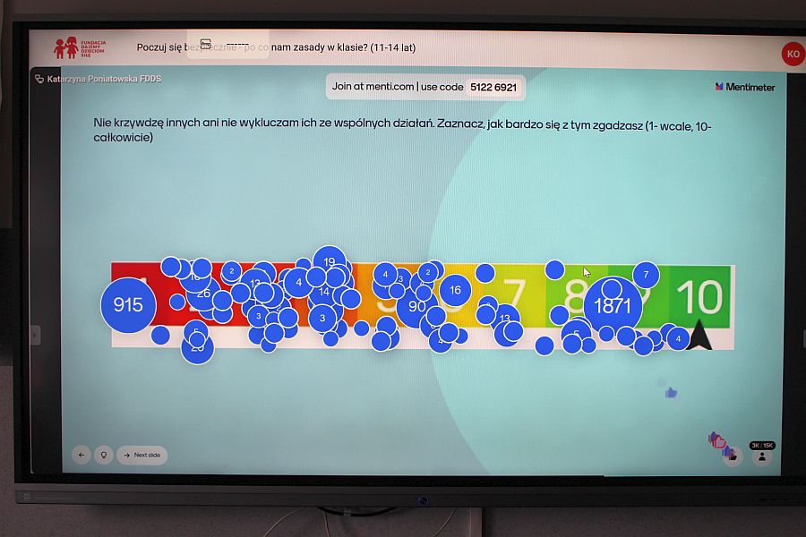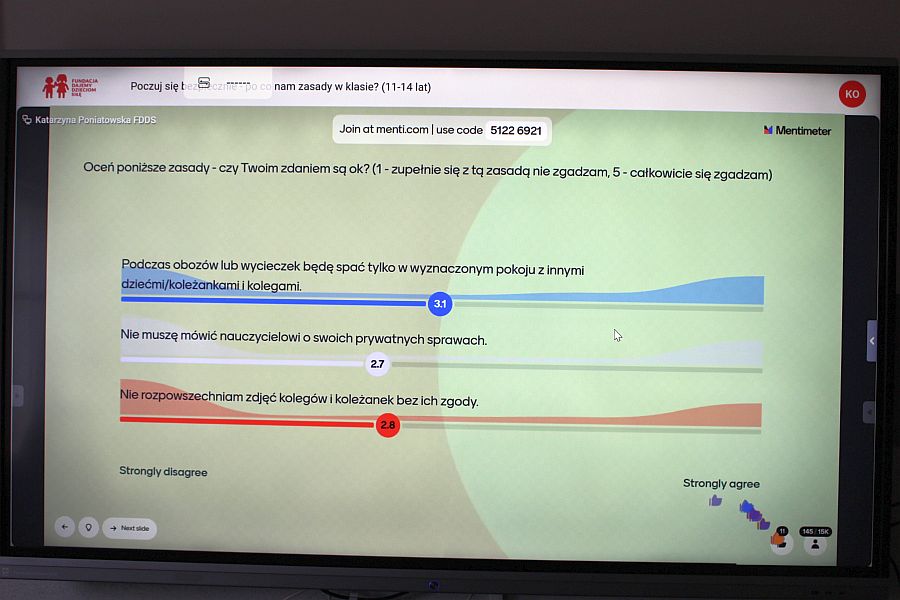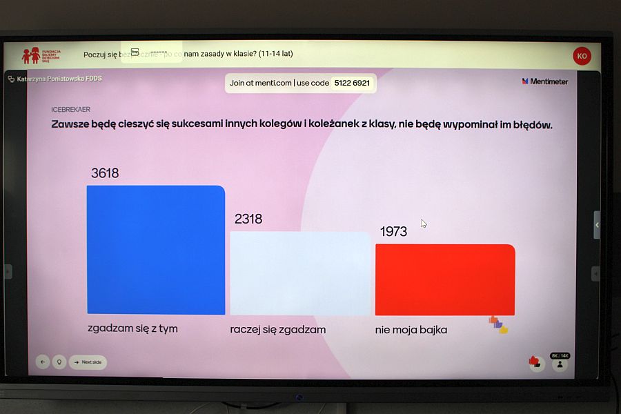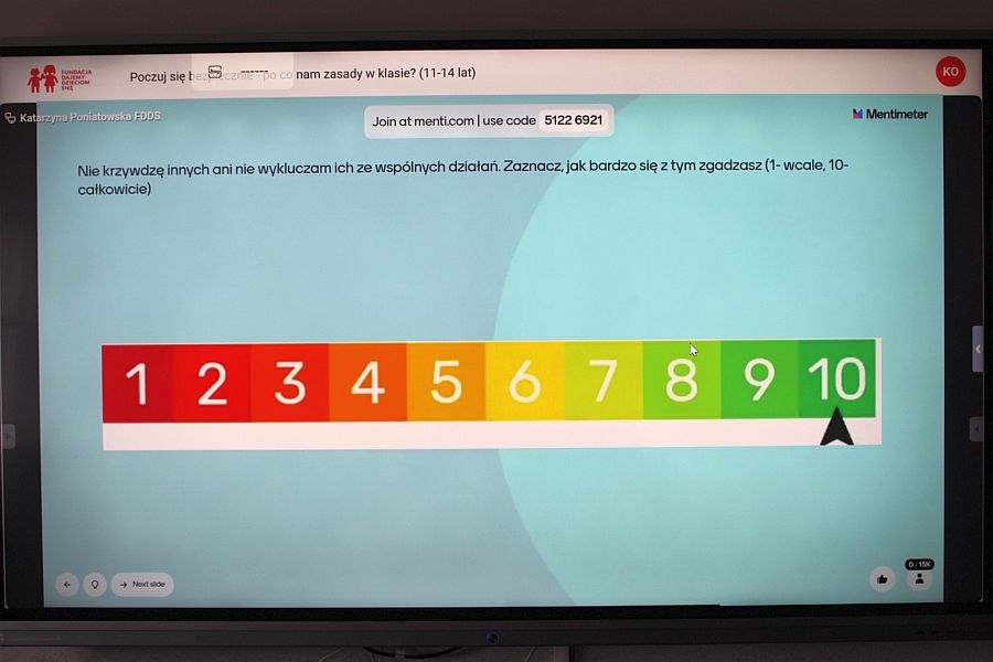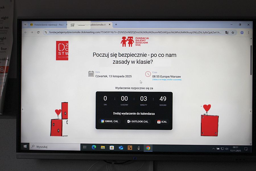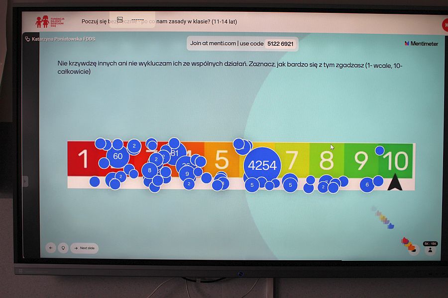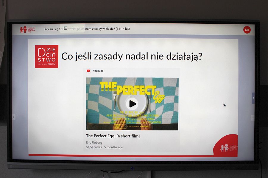 Kampania Dzieciństwo bez Przemocy jest coroczną, ogólnopolską akcją, mobilizującą całe społeczeństwo do zapobiegania krzywdzeniu dzieci oraz podejmowania działań na rzecz budowania bezpiecznego dzieciństwa, dlatego nasza placówka zgłosiła w niej swój udział. Oprócz zajęć, które odbywały się podczas lekcji i zajęć bibliotecznych, postanowiliśmy wziąć udział w zajęciach prowadzonych w formie interaktywnej  pt. „ Poczuj się bezpiecznie – po co nam zasady w klasie”–  gdzie młodzież obejrzała krótkie materiały filmowe, wzięła udział w głosowaniach online. Punktualnie o 8.55 połączyliśmy się na żywo z panią Katarzyną Poniatowską – socjoterapeutką,  pedagożką resocjalizacyjną, specjalistką ds. ochrony dzieci Fundacji Dajemy Dzieciom Siłę, która prowadziła zajęcia dla ponad 2000 klas. W naszej szkole uczestniczyły klasy I oraz klasa 8, a Podczas lekcji uczestnicy zastanowią się, jakie znaczenie mają bezpieczne relacje i dlaczego umiejętność mówienia „stop” albo „nie” bywa trudna, a jednocześnie bardzo potrzebna. Na samym końcu uczniowie próbowali wybrać listę zasad, które mogą pomóc budować w klasie atmosferę szacunku i zaufania. Wszystkim bardzo podobała się ta inna forma zajęć, każdy z zainteresowaniem słuchał i uczestniczył aktywnie w zajęciach.
